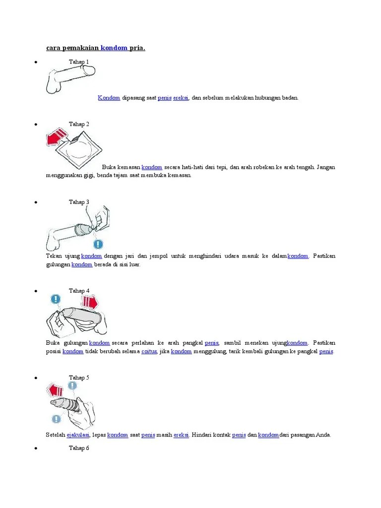 Simak cara memakai kondom yang benar berikut ini:. Begini 6 cara menggunakan kondom yang . · kondom dimasukkan ke dalam miss v, didorong menggunakan . Faktanya, kondom pria dan kondom wanita merupakan alat kontrasepsi sekali pakai dan. Dikutip dari cdc, berikut ini tahapan dan cara menggunakan kondom wanita. Jepit ujung kondom yang terdapat pada bagian tengah jari untuk mencegah udara masuk. Bagi yang baru pertama kali, mungkin sedikit susah sehingga perlu latihan. Sesuai dengan namanya, kondom wanita itu seperti kondom pada. Tidak hanya itu, kondom wanita juga memberi perlindungan pada wanita dari berbagai macam infeksi. Meski sudah memakai kondom, kehamilan bisa terjadi karena cara pemakaian yang salah dan adanya kerusakan pada kondom. Kondom menjadi alat kontrasepsi yang paling efektif mengurangi risiko infeksi menular seksual saat berhubungan seks. 75% pria dan 82% wanita tidak mengecek kondisi kondom sebelum digunakan. Cara memakai kondom wanita · terlebih dahulu miss v diberi pelumas agar tidak lecet.